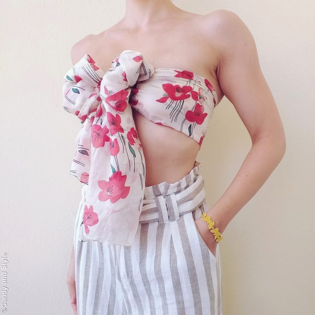 1. นำมาพันเป็นเกาะอก – เปรี้ยวจี๊ดและเก๋ไก๋ กับเทรนด์แบบ Tops bra กับการนำผ้าพันคอมาพับครึ่งละนำมาผูกเป็นเกาะอก ให้เลิศสุดๆ รับรองว่าแฟชั่นนี้ เปรี๊ยวแน่นอนค่ะ