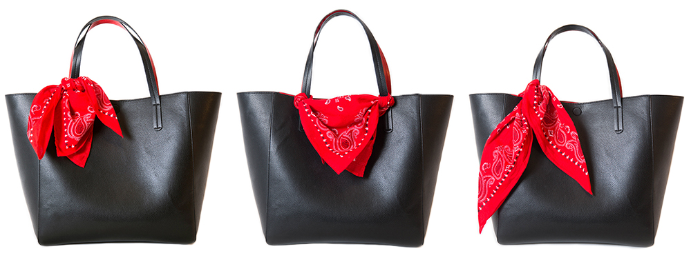 3. นำมาผูกกระเป๋า – ไอเทมของตายที่ต้องพกไปไหนมาไหนตลอดอย่างกระเป๋าถือ เราสามารถเพิ่มดีเทลให้น่ามองมากขึ้น ด้วยการนำผ้าพันคอพื้นสวย มาพันผูกลงไปบริเวณหูกระเป๋า แค่นี้ ก็ดู Limited Edition แล้วค่ะ
